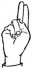 На ћирилици написано ЈЕЛИСАВА ВЕШКОВАЦ састоји се из 16 слова [?]. Исписано ћириличном једноручном азбуком за глувонеме: